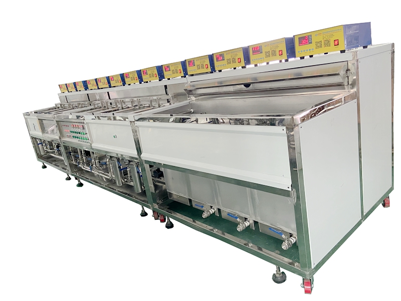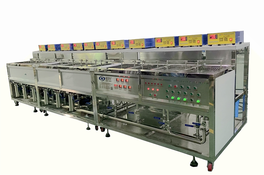 高硼硅玻璃管超聲波清洗機VGT-1307FS 高硼硅玻璃管超聲波清洗機共有13個功能槽,配置有循環過濾系統、自動恒溫系統、拋動系統、超聲波清洗系統、溢流系統等。