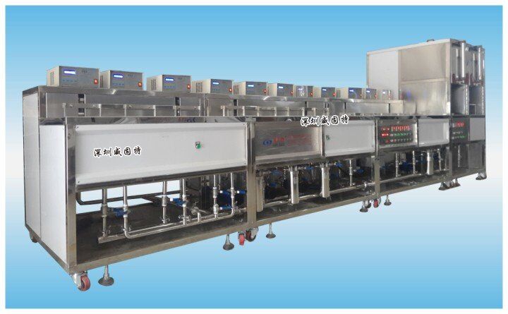 整個清洗工藝由人工手動控制模式完成,共有6個超聲波清洗工位、1個純水漂洗槽、1個慢拉脫水槽、2個熱風烘干槽組成。